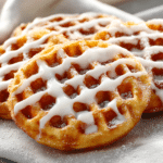Warm waffle-style donuts filled with cinnamon apples and topped with a sweet vanilla glaze. A fun, easy twist on classic apple fritters — no frying required!