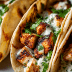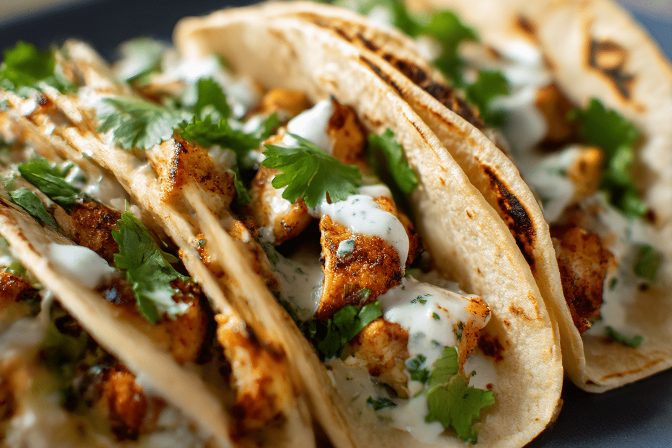 The combination of juicy chicken and gooey cheese creates a rich, savory center, while a creamy garlic sauce ties everything together. When lightly toasted, the tortilla turns crisp on the outside while staying soft enough to fold perfectly around the filling.