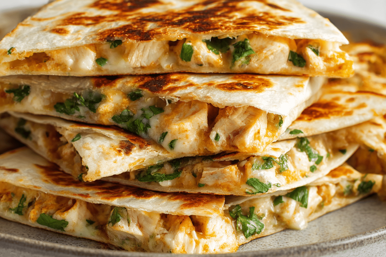 Yes, the chicken filling can be prepared in advance and stored in the refrigerator for up to three days. When ready to serve, reheat the filling gently in a skillet before assembling and toasting the wraps. This keeps the tortillas crisp and the cheese freshly melted.