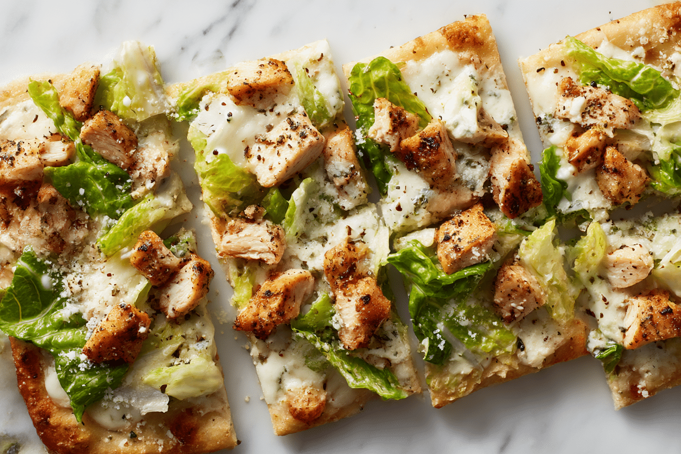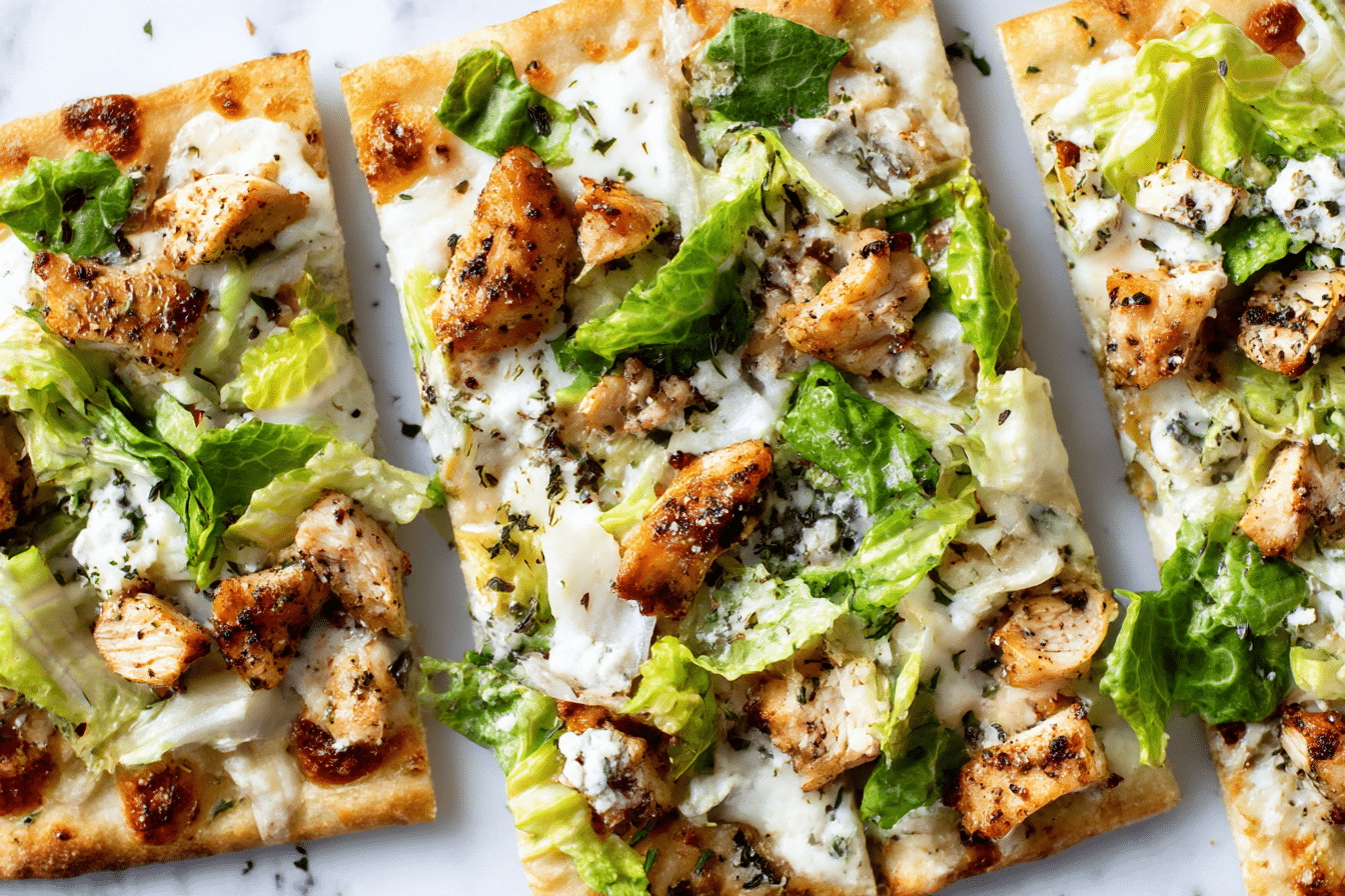 Chicken Caesar Flatbread is a crisp, creamy, and savory dish combining tender chicken, fresh romaine, and Parmesan on warm flatbread.