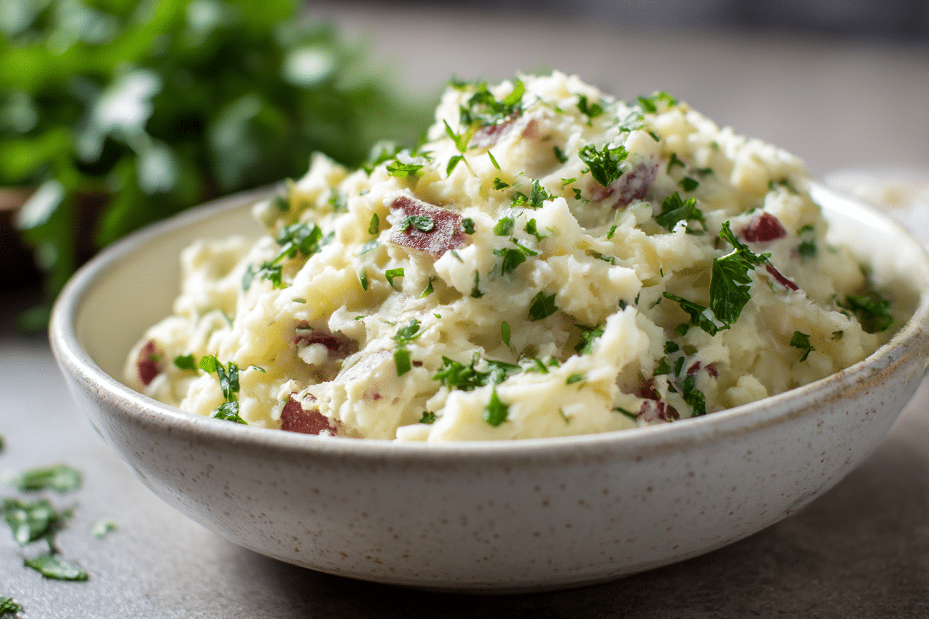 Colcannon is a traditional Irish recipe made with creamy mashed potatoes blended with sautéed cabbage or kale, butter, and scallions for a comforting and classic side dish.
