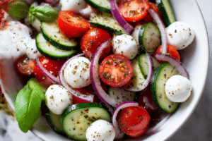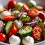 Easy Cucumber Caprese Salad is a refreshing twist on the classic Italian favorite. Crisp cucumbers join juicy tomatoes, creamy mozzarella, and fragrant basil to create a light and vibrant dish that works for many occasions.