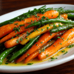 Honey Glazed Carrots and Green Beans work well for weeknight dinners, holiday meals, or casual gatherings. With minimal preparation and bright flavors, this recipe provides an easy way to add color and freshness to any table.