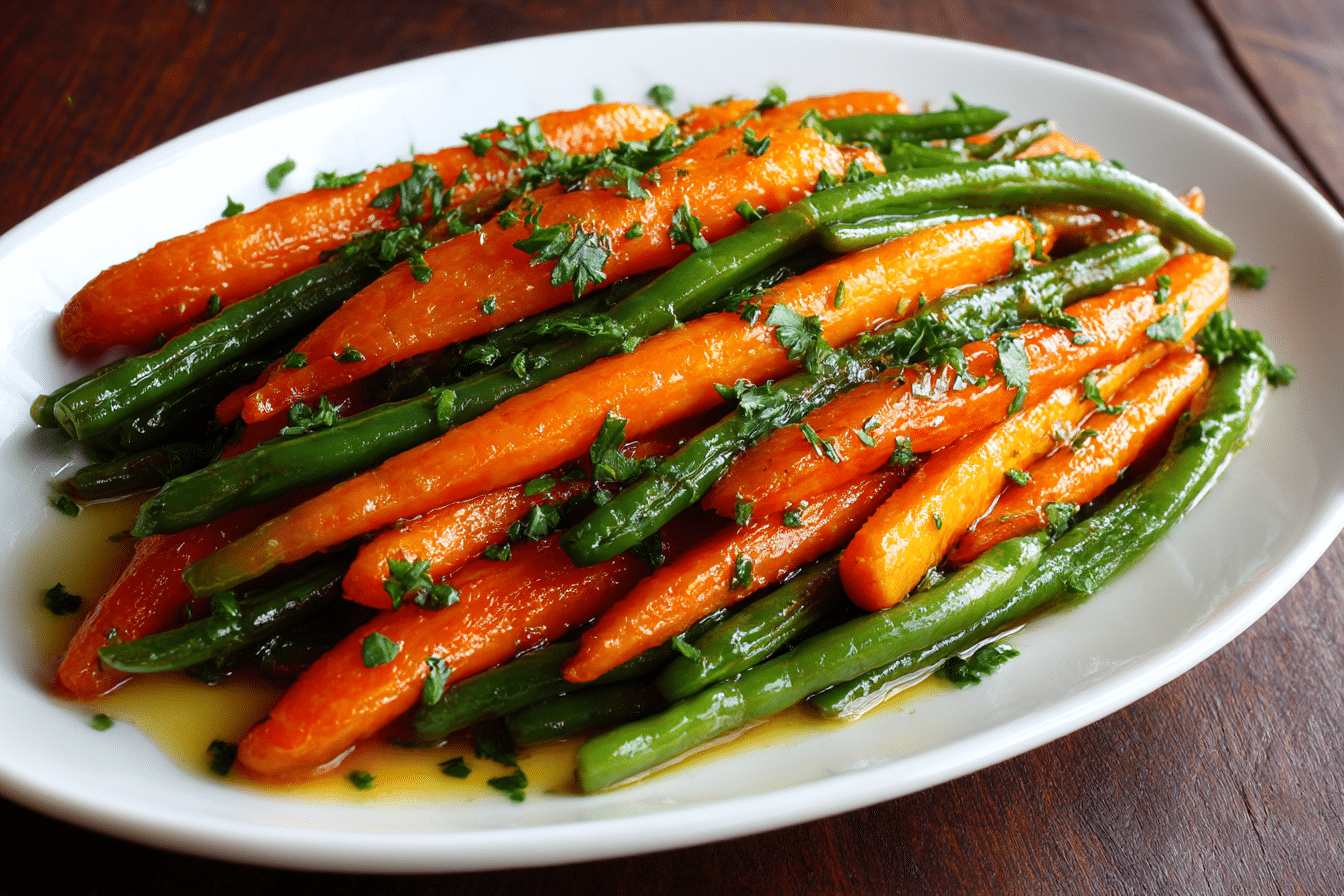 Honey Glazed Carrots & Green Beans is a simple yet flavorful side dish that brings together crisp vegetables with a glossy honey glaze. The natural sweetness of honey enhances the earthy flavor of carrots while balancing the fresh taste of green beans.
