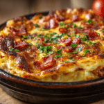 This recipe layers seasoned ground beef, crispy bacon, melty cheese, and a creamy egg-based topping for a dish that tastes indulgent but fits perfectly into a ketogenic lifestyle. It’s easy to prepare, great for meal prep, and family-friendly—even non-keto eaters will come back for seconds.