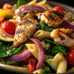 Mediterranean Chicken Pasta Salad is a bright and satisfying dish that combines tender pasta, juicy chicken, and fresh vegetables with classic Mediterranean flavors. It brings together vibrant ingredients such as tomatoes, olives, cucumbers, and herbs for a balanced meal that feels both hearty and refreshing.