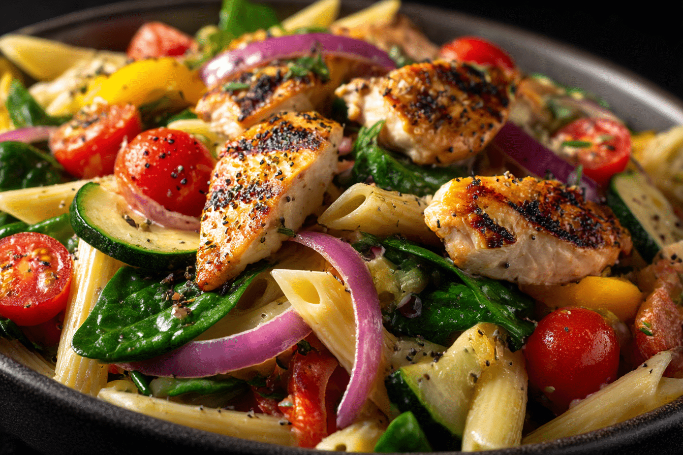 Tossed with a simple olive oil and lemon dressing, Mediterranean Chicken Pasta Salad delivers fresh flavor in every bite while remaining simple to prepare.