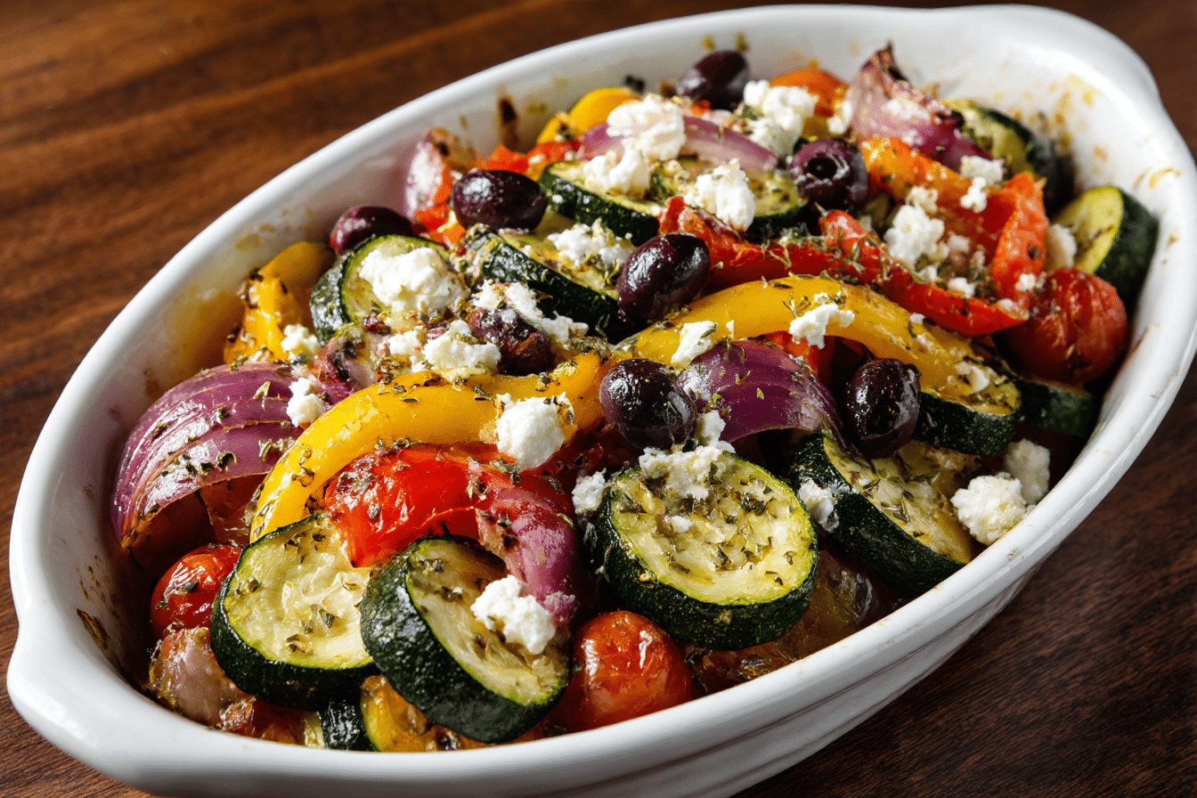 Greek vegetables roasted together in a single pan create an explosion of color and taste. The combination of olive oil, fresh herbs, and a touch of lemon juice elevates simple ingredients to a dish that feels indulgent and nourishing at the same time. Whether served warm from the oven or at room temperature, this recipe delivers comfort, freshness, and a satisfying Mediterranean flair.